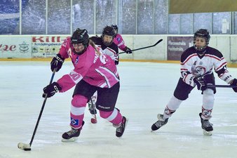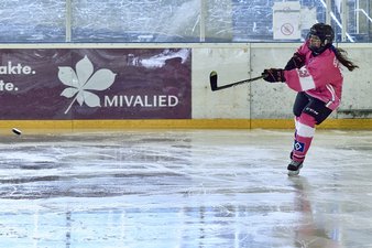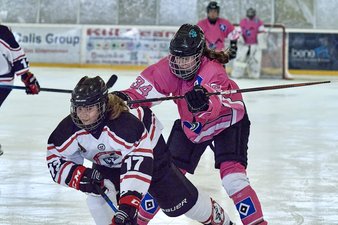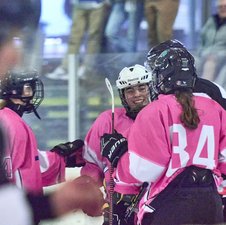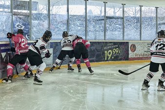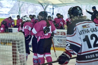 Uff, das hatten wir uns ehrlich gesagt ganz anders vorgestellt! Coach Hannes nahm einige Umstellungen im Team vor, wir unseren Herzen in beide Hände und so kehrten wir wild entschlossen wieder auf das Eis zurück. Es war noch keine Minute gespielt, als das nächste Tor fiel ... nur leider auf der falschen Seite, denn Berlin hatte das 1-6 erzielt. Doch irgendwie schien dieses Tor ein Weckruf gewesen zu sein. Denise verkürzte durch 2 schnelle Treffer in der 42. Minute zum 3-6, Johanna legte in der 48. Minute nach und Denise stellte in der 53. Minute auf 5-6. Zwar konnten die Gäste in der 54. Minute noch einen Treffer erzielen, aber die Partie war nach unserem Zwischenspurt wieder offen und insbesondere die nicht ganz sattelfest wirkende Berliner Abwehr samt Torfrau wackelte nun. Wir warfen jetzt alles nach vorne und wollten unbedingt noch einmal den Anschluss erzielen, doch leider lief uns die Zeit weg und so blieb es beim Endstand von 5-7.