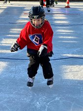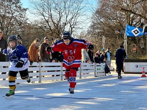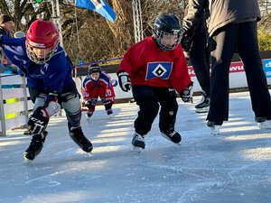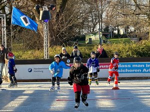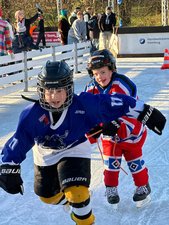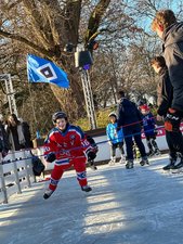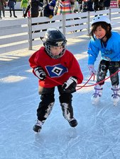 Aber es ging auch so. Sonntag den 1.12. und Sonntag, den 8.12. nutzte bzw. nutzt der HSV von 14 - 15 Uhr die Eisfläche. 7 Kinder waren bei strahlendem Sonnenschein dabei. Die Trainerin hatte Springseile mitgebracht. So konnten die Kinder Sprünge üben, durchfahren durch die gespannten Seile, Slalom fahren und Bremsen üben (mit dem Band um den Bauch des Vordermannes-Frau und Bremsen des Hintermannes-Frau).