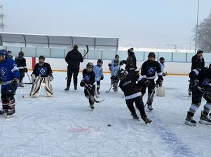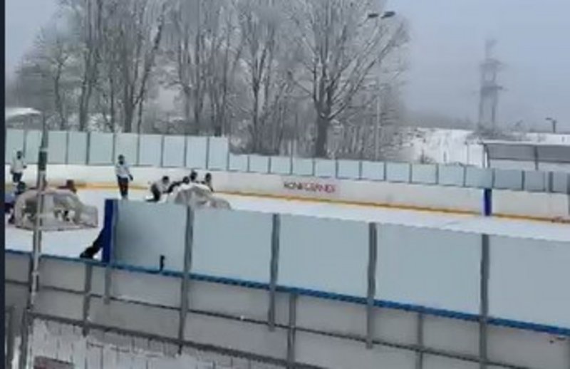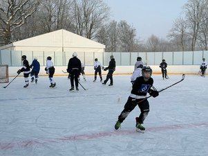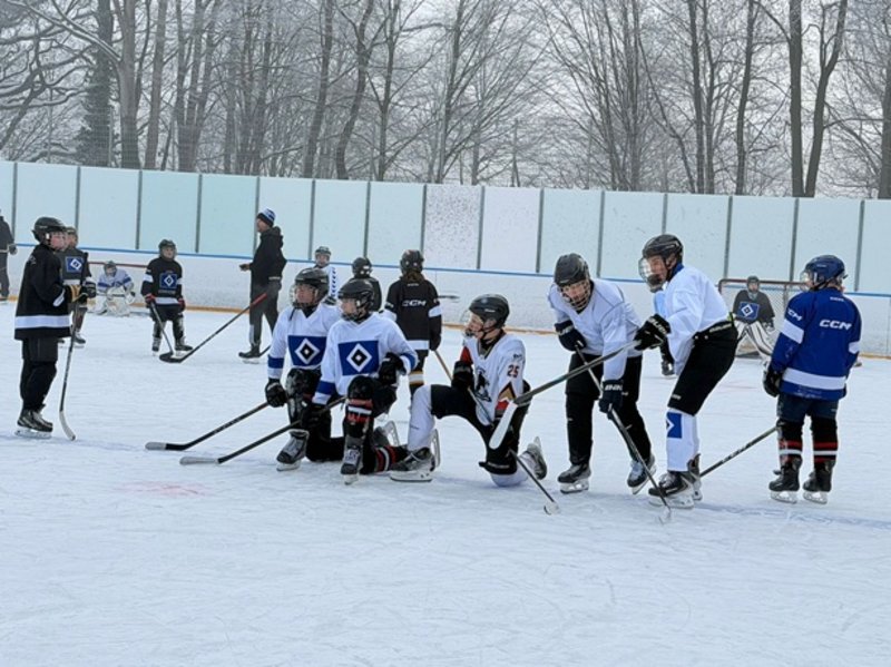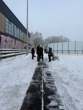 Nun war alles organisiert und die HSV Kinder von U11 bis U17 wollten trotzdem aufs Eis. Nach einer Stunde Training wurden kurzerhand die Tore zum Schnee schieben benutzt.